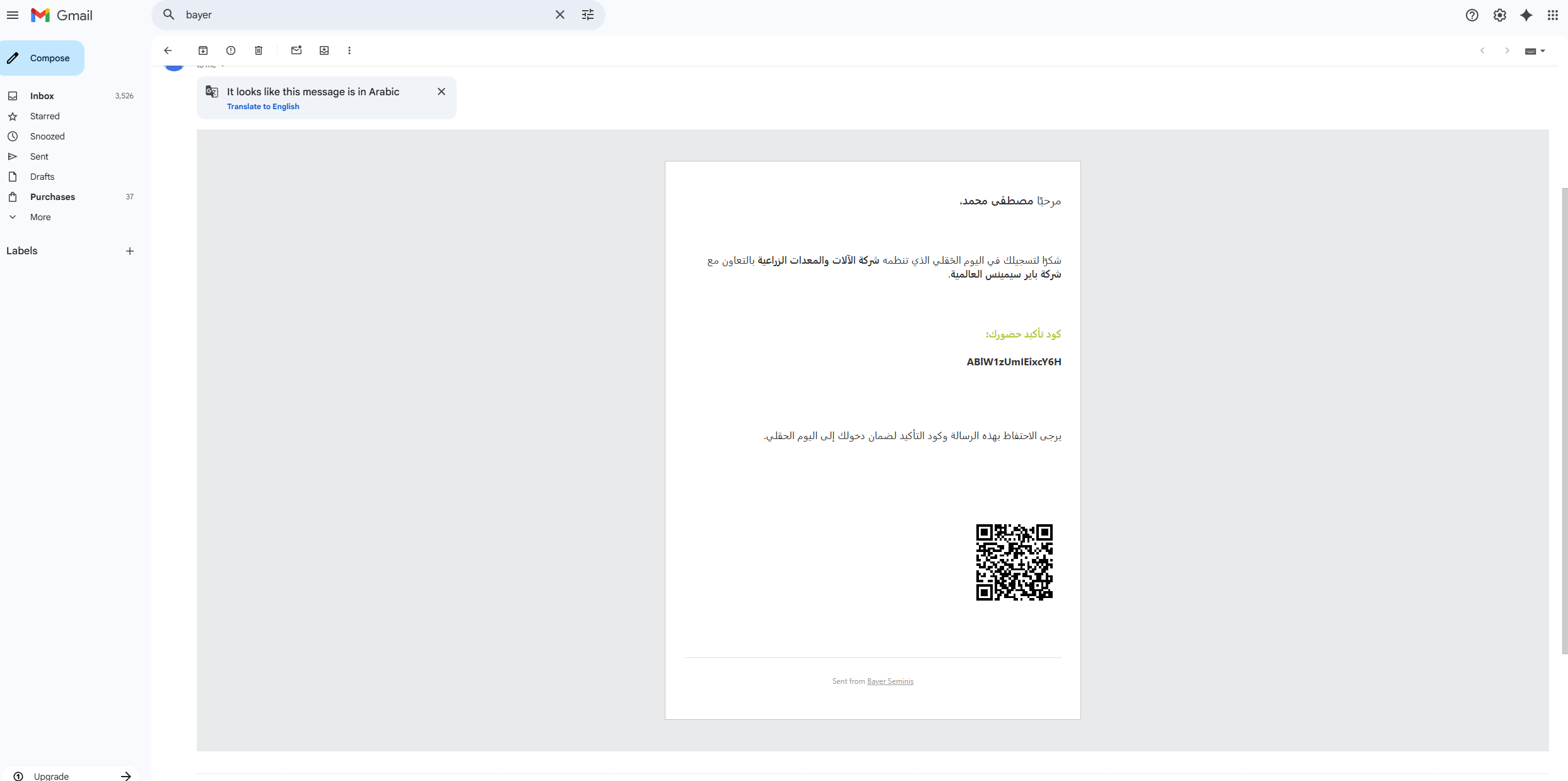 2 – An Email Received with QR Code and Ticket ID